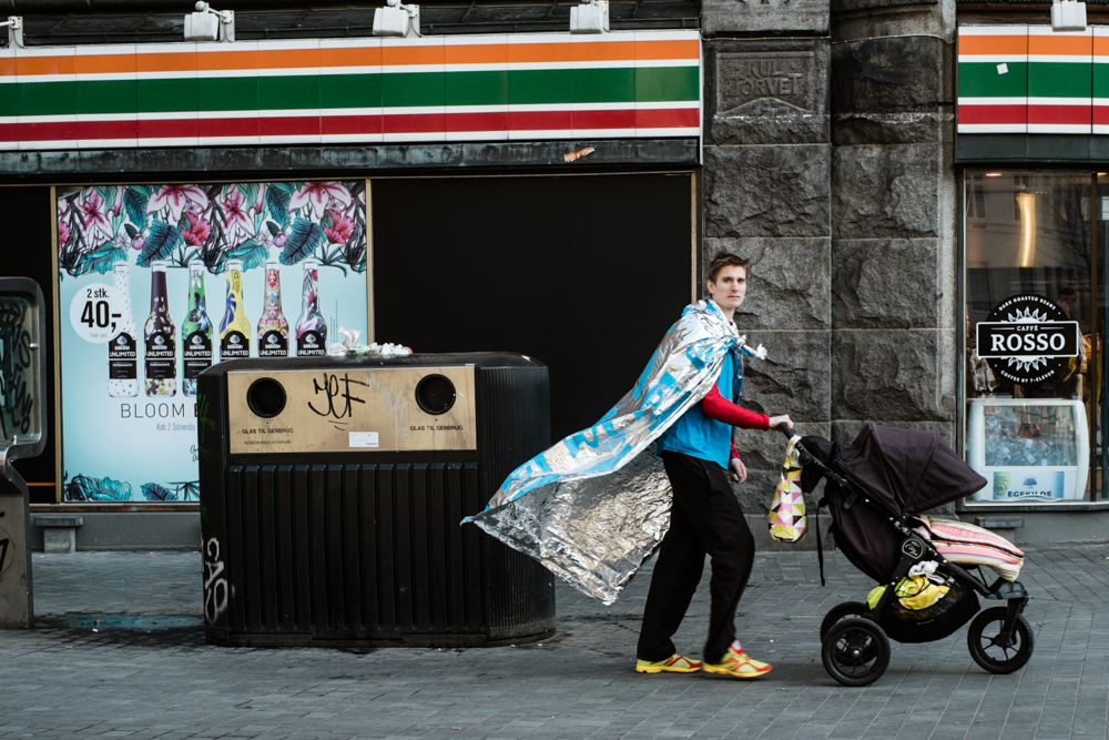 Superhero Apr 23 201413 August 2021 March 2014, Copenhagen: Even superheros have to drop by 7-11 with the kids once in a while.