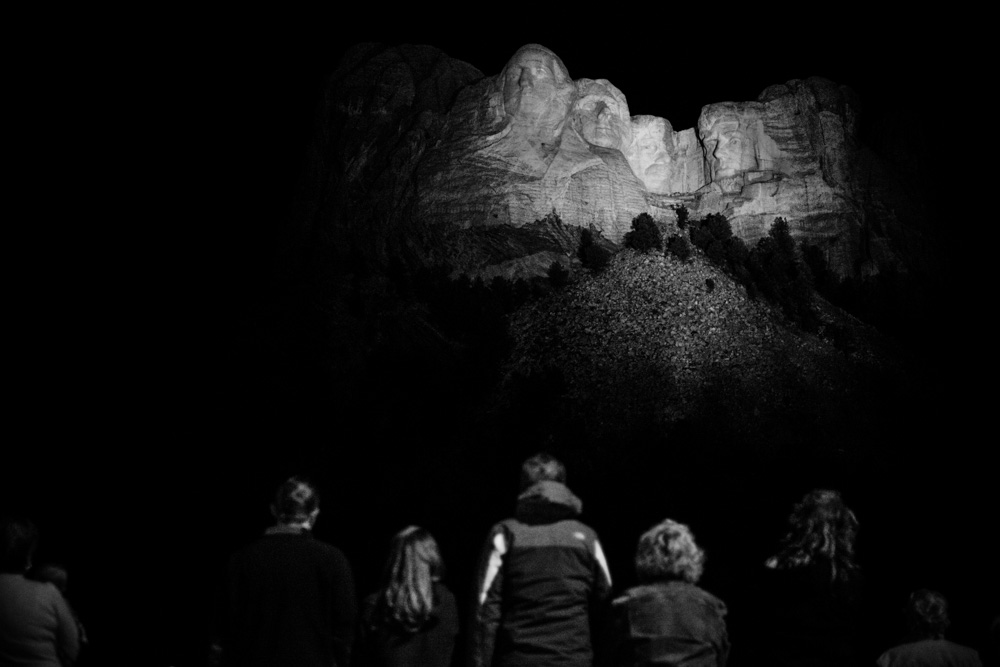 Rushmore Oct 27 201413 August 2021 Crowds gather at dusk, awaiting the lighting of the four Presidents Visitors stand for the national anthem as Mount Rushmore is lit Gutzon Borglum, Mount Rushmore’s sculptor The Presidents by day
