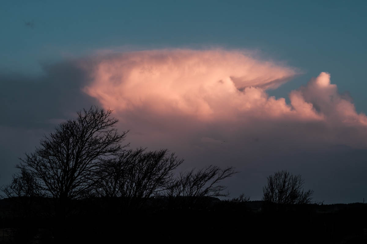 I drank my coffee this morning, watching a cumulonimbus stratifying in the distance, in the pink hue of the morning.