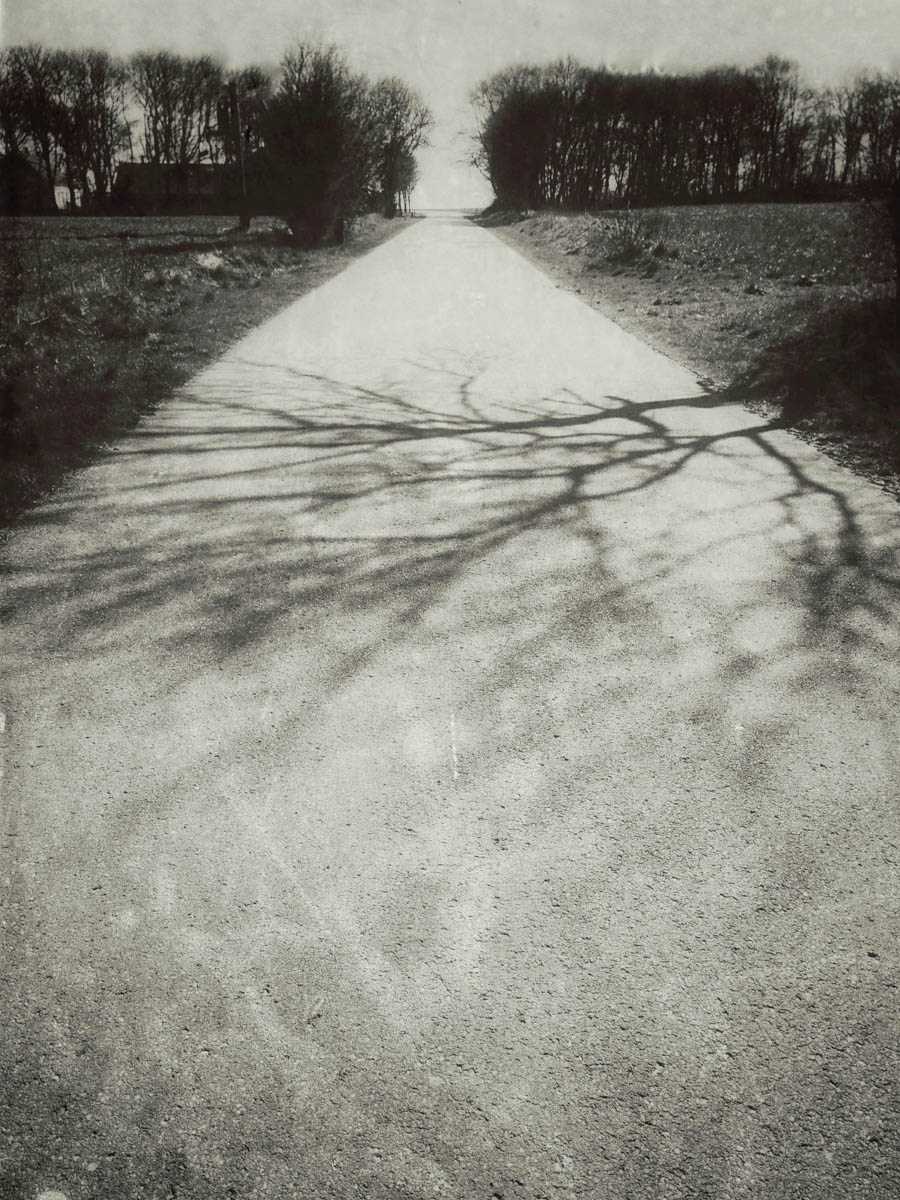 I’m not sure what to do about this daily sunshine, after 2 months of grey. Truth be told I do really kind of miss the grey, although the warming is very welcome. But where there’s sun, there’s shadow. And wind break trees are bare, so I’m making the most of them while they’re still gnarling in the shade.