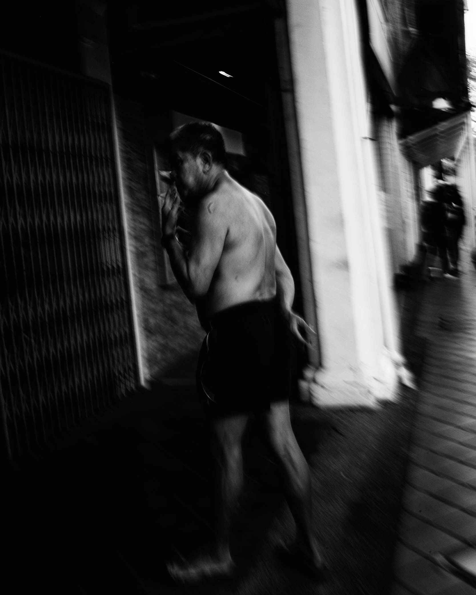 The work of a street photographer involves that. Chasing—another non-pacifist verb—after those still frames that encapsulate a world in an image. Not all of us are aggressive like Bruce Gilden in making our photos. But we all, eventually, give in to the hunt for that perfect single frame.