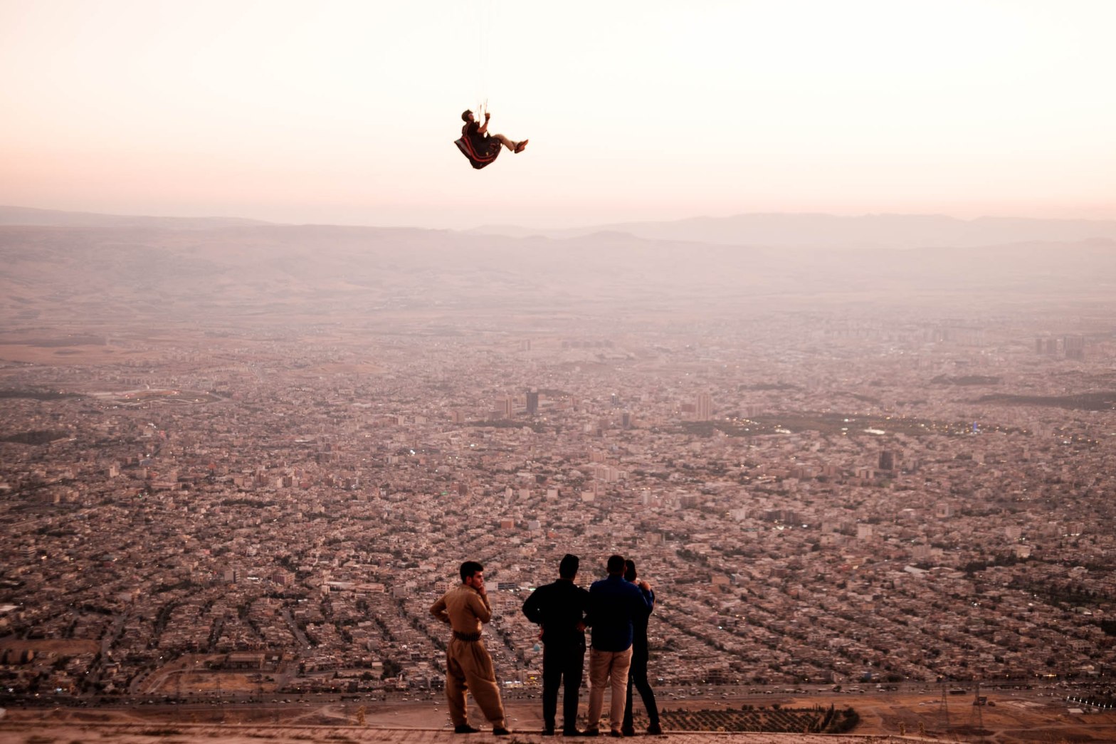☀️ Sulaymaniyah city. Kurdistan, Iraq, 2019. One of many landing outtakes, as paragliders (you can see one of them in the first post) attempted landing on the same ridge they took off from on Goizha mountain. Demonstrably harder that it sounds, as the wind was howling around the mountain that evening. The crowds gathered —Ihsan…More